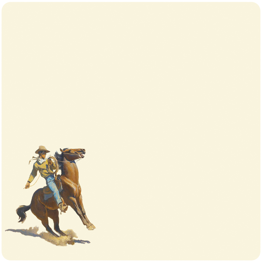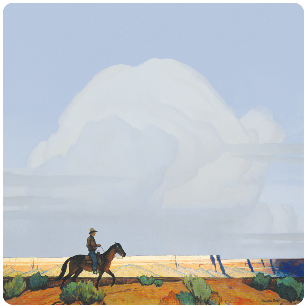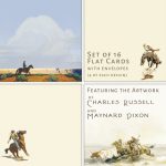 Our favorite artist Karmel Timmons designed these cards using elements of paintings by two of her favorite artists; Maynard Dixon and Charles Russell. This is a set of 16 Flat Cards (no fold) with designs on the front with matching color back and envelopes. (8 White, 4 Ivory, and 4 Kraft).